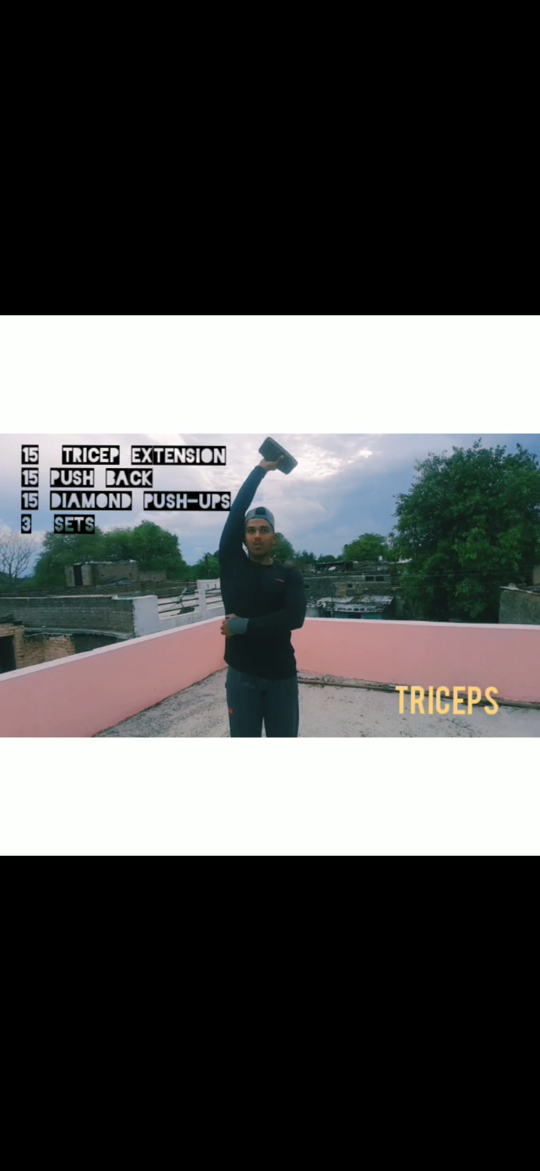 5️⃣ 15 tricep extension 15 pushback 15 diamond push-ups 3 sets